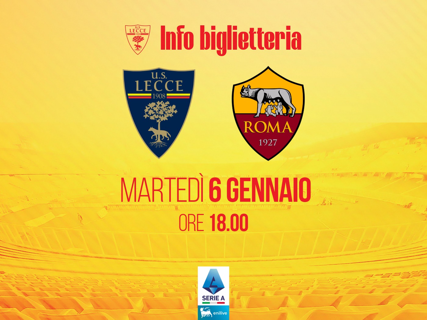 L’U.S. Lecce comunica che a partire dalle ore 10:00 di venerdì 02 gennaio 2026 sarà attiva la vendita dei biglietti validi per la gara del Campionato di Serie A Enilive 2025/2026 Lecce – Roma, in programma martedì 06 gennaio 2026 alle ore 18:00.
