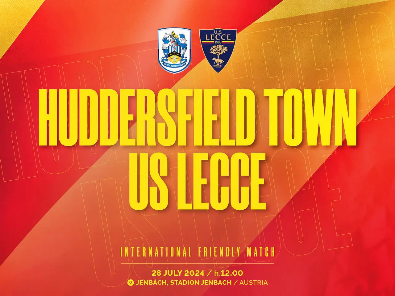 L’U.S. Lecce comunica che domenica 28 luglio i giallorossi disputeranno l’ultima amichevole del ritiro austriaco affrontando l’Huddersfield Town AFC, alle ore 12:00 presso lo Stadion Jenbach di Jenbach.