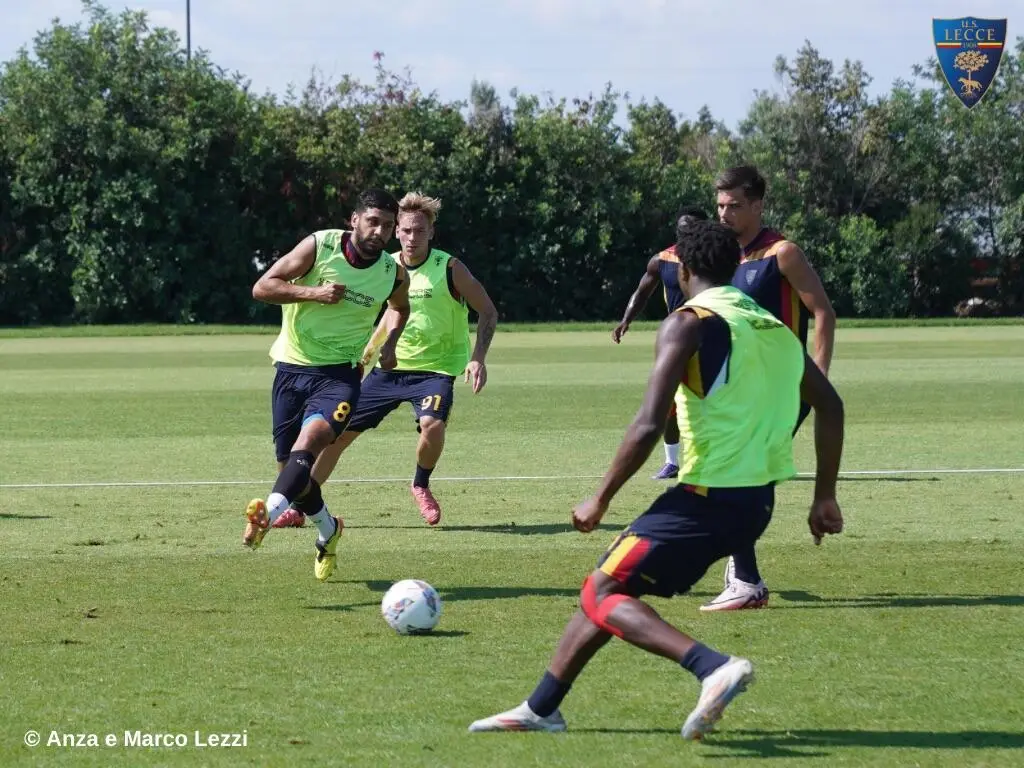 Giallorossi impegnati in un allenamento mattutino all’Acaya Golf Resort & SPA in vista del primo impegno ufficiale della stagione, in programma lunedì alle 18:30 al Via del Mare con il Mantova, valevole per la Coppa Italia Frecciarossa.