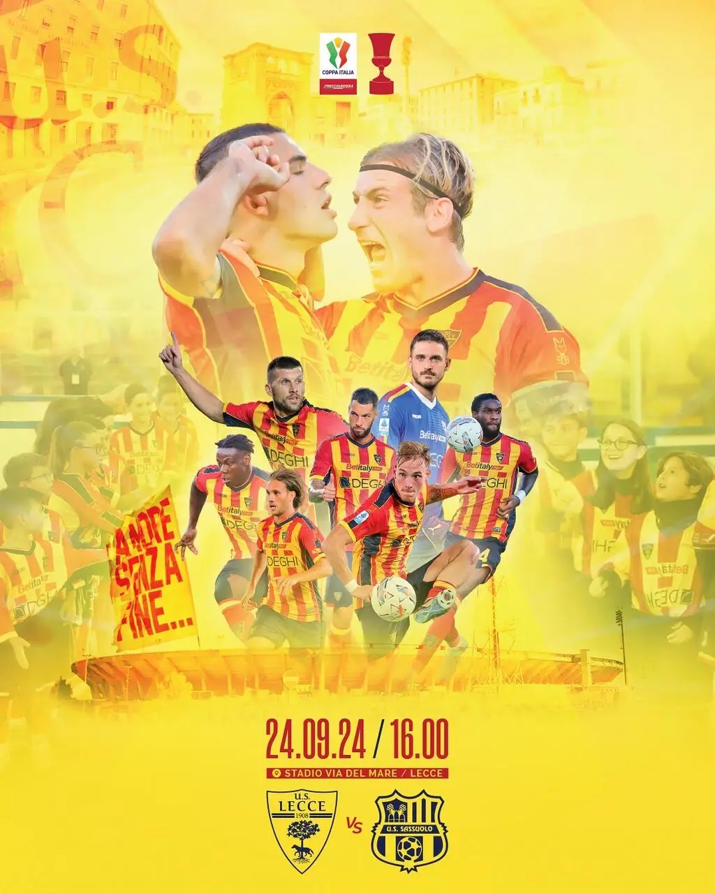 In occasione della gara di Coppa Italia Frecciarossa Lecce - Sassuolo del 24 settembre alle ore 16:00, Β lβU.S. Lecce Γ¨ lieta di ospitare con accesso gratuito i bambini e le bambine, i ragazzi e le ragazze delle scuole elementari, medie e superiori del Salento.